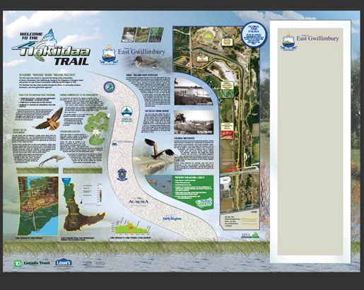 During Mark's experiences with the Community Mapping Project and the creation of 'The Georgina Book' he had the opportunity to work with a group of skilled and talented individuals. Each of the team members brought different and unique skill sets to the table. Through collaboration with these skilled individuals Mark has assembled an Interpretive Sign Design branch of Mark Setter Associates. To date, the Design branch has created some striking and beautiful interpretive signs, from concept, to research, to text and photos, to final print-ready files.