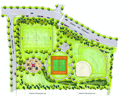 The park provides for active recreation such as baseball, basketball, soccer and tennis while maintaining spaces for more passive activities such as leisurely strolls. Seating areas  for social gatherings and a decorative gazebo provide a shady spot for watching the children enjoy the playground areas.