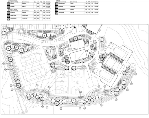 It was essential to maintain the integrity of the landscape by utilizing a native palette of trees, shrubs and wildflowers. Rock obtained from the site for servicing and amenities was used to help shape outdoor spaces and create privacy. The raised grades also provided soil pockets for larger trees to enhance the parkettes and open spaces and community fabric.